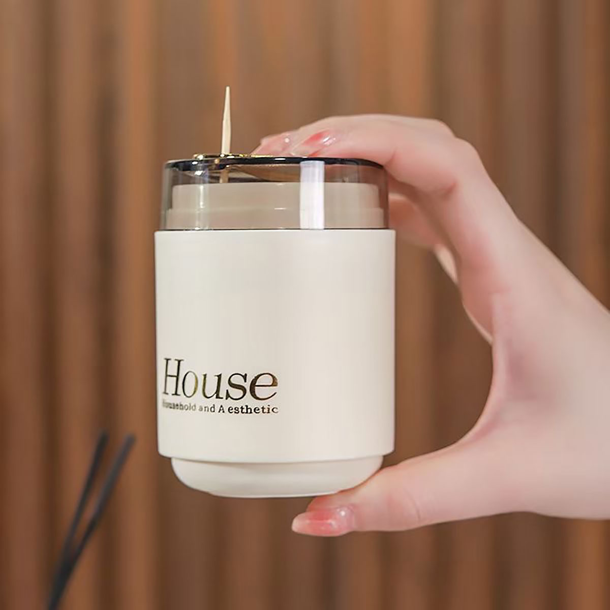 奶油風自動牙簽筒