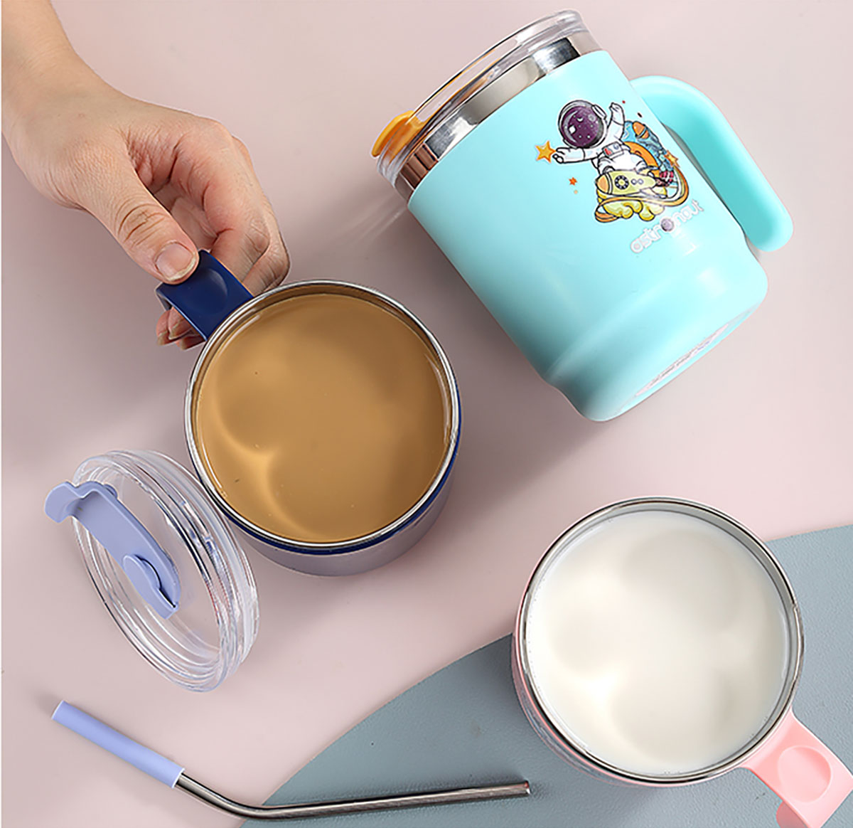 400ml/500ml萌趣不銹鋼雙飲杯(配不銹鋼吸管)