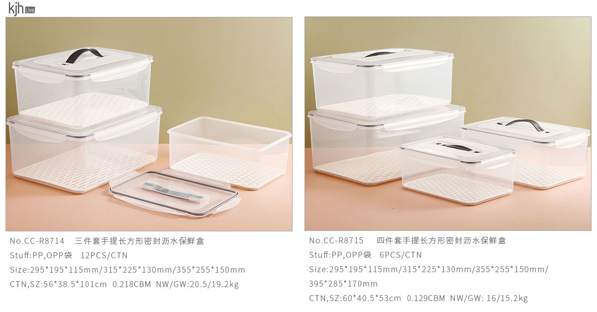 三件套/四件套手提長方形密封瀝水保鮮盒