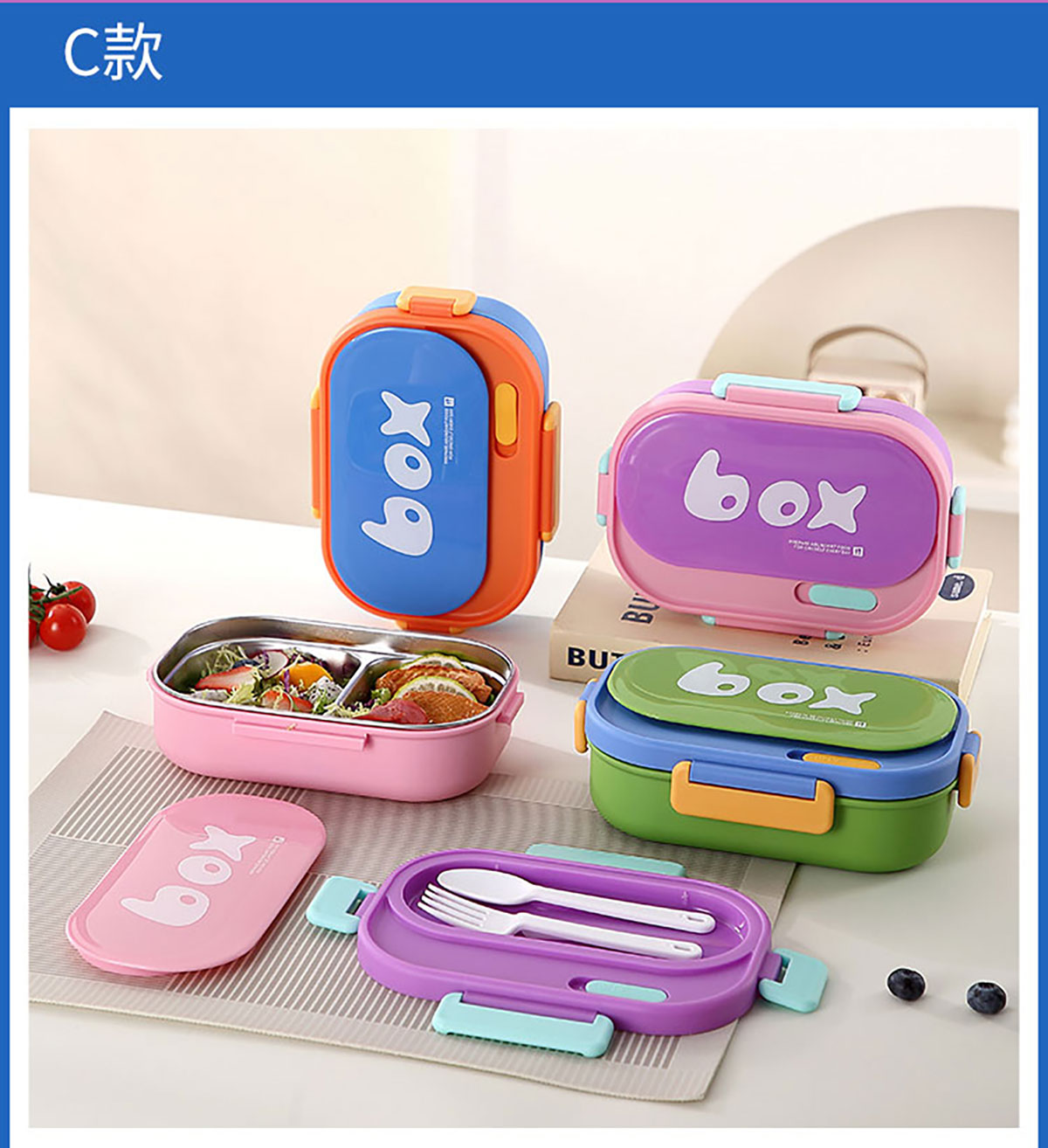 星樂(lè)便當(dāng)盒(三格PP款/PP加高款/不銹鋼矮款/不銹鋼加高款/水杯套裝)